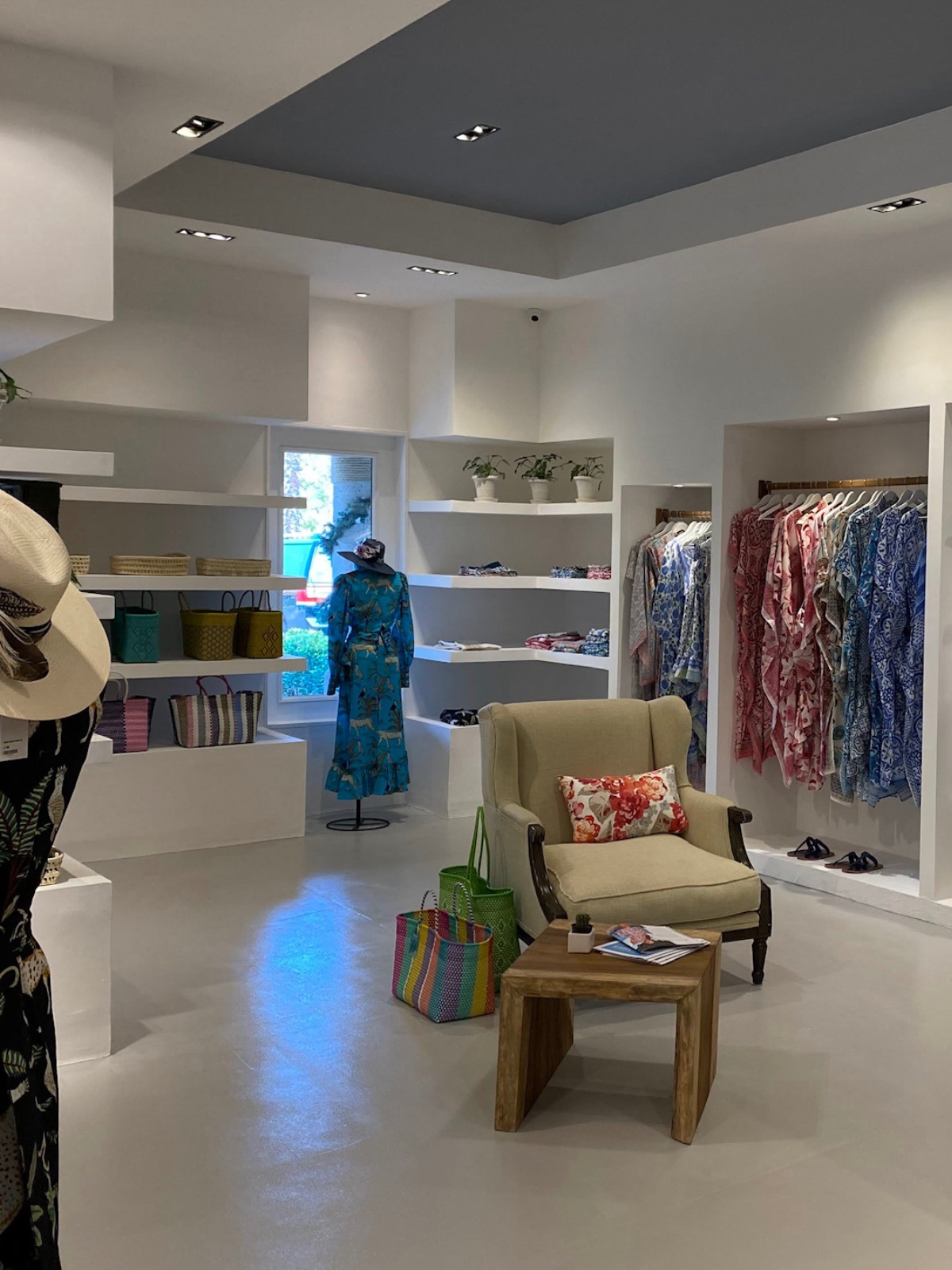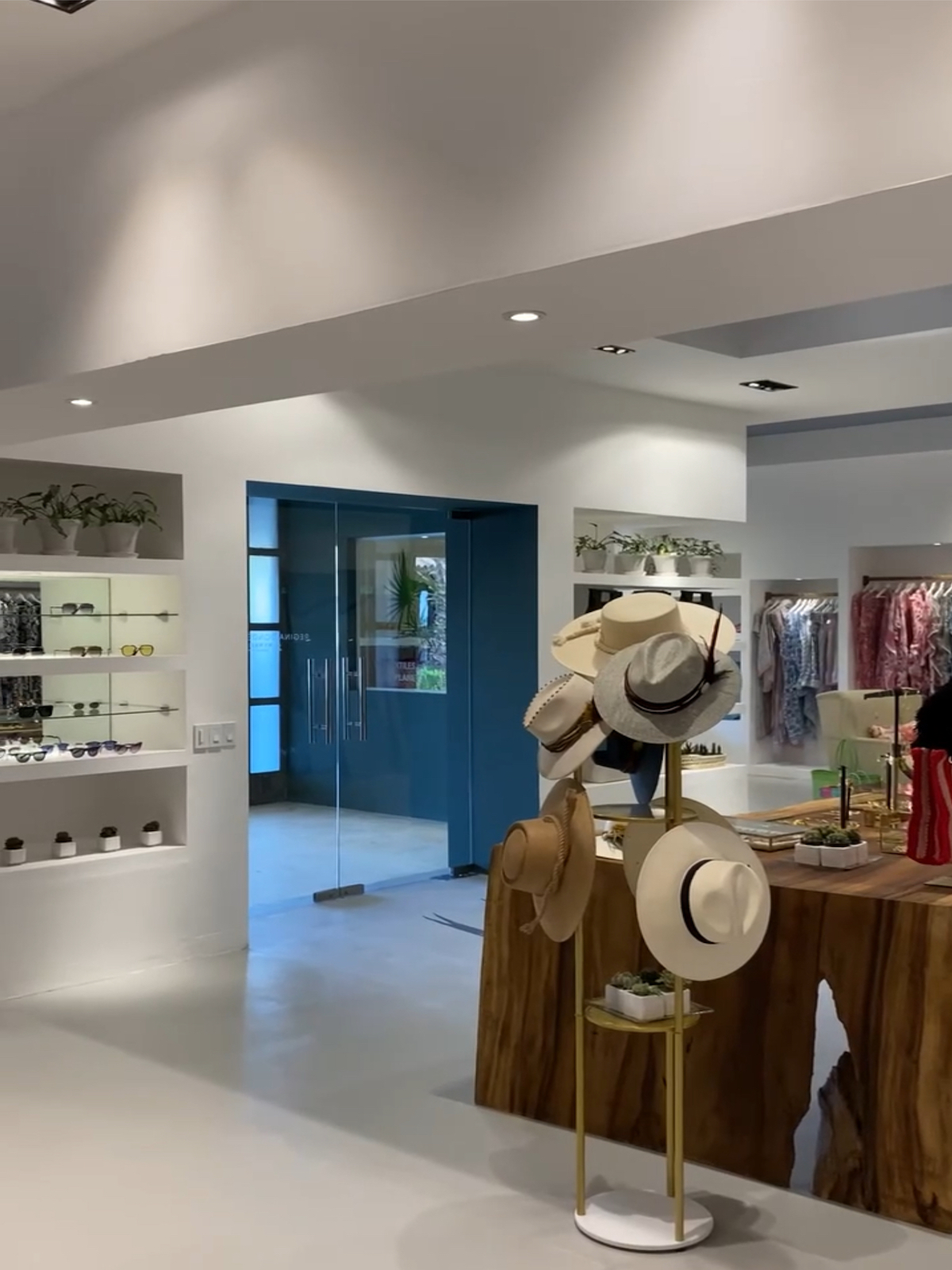 - Architectural Elements: Floating wood rails were installed to provide both functionality and visual appeal. These rails displayed textiles and garments elegantly, without cluttering the boutique’s open, airy feel.
